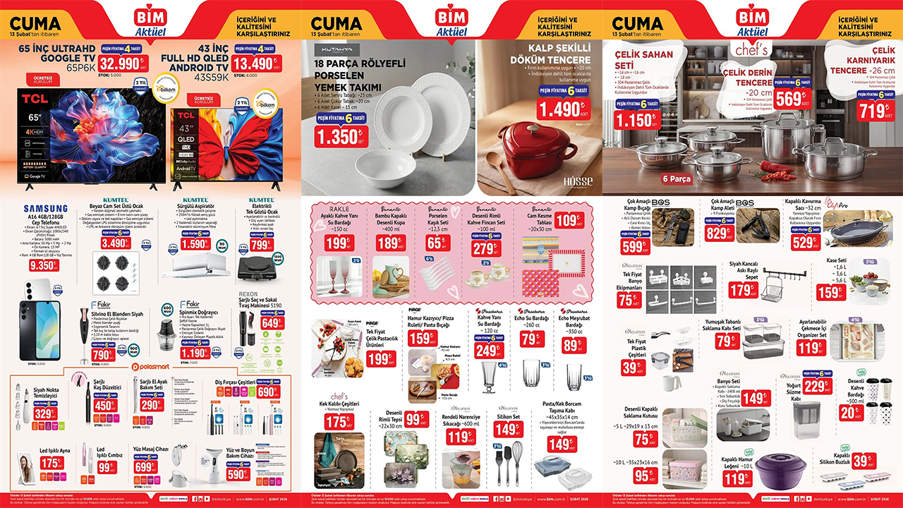 BİM’in 13 Şubat tarihinden itibaren satışa sunacağı ürünler ve fiyatları yayınlanan kataloğa göre şöyle:
